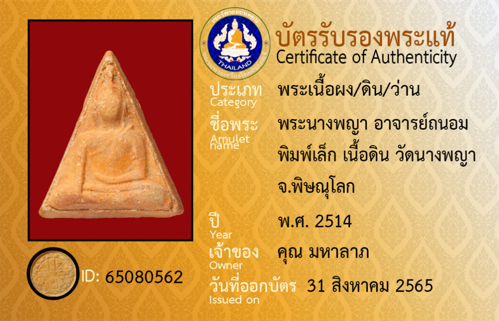 ชื่อพระ : พระนางพญา อาจารย์ถนอม พิมพ์เล็ก เนื้อดิน วัดนางพญา จ.พิษณุโลก