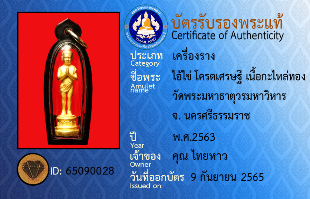 ชื่อพระ : ไอ้ไข่ โคตรเศรษฐี เนื้อกะไหล่ทอง วัดพระมหาธาตุวรมหาวิหาร จ.นครศรีธรรมราช