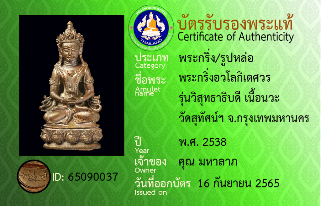 ชื่อพระ : พระกริ่งอวโลกิเตศวร รุ่นวิสุทธาธิบดี เนื้อนวะ วัดสุทัศน์ฯ จ.กรุงเทพมหานคร