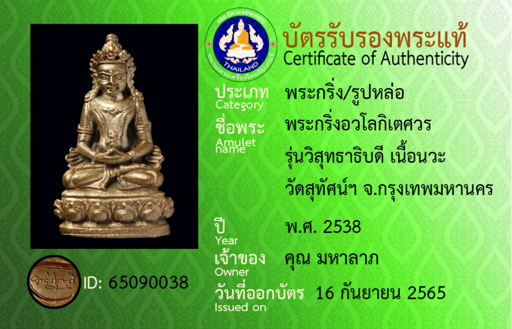 ชื่อพระ : พระกริ่งอวโลกิเตศวร รุ่นวิสุทธาธิบดี เนื้อนวะ วัดสุทัศน์ฯ จ.กรุงเทพมหานคร