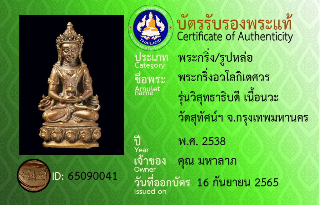 ชื่อพระ : พระกริ่งอวโลกิเตศวร รุ่นวิสุทธาธิบดี เนื้อนวะ วัดสุทัศน์ฯ จ.กรุงเทพมหานคร