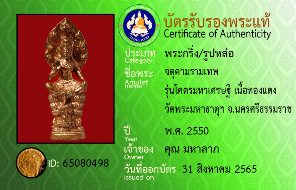 Amulet name : ja tu kam ram ma tep wat prama ha tat