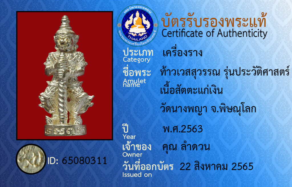 ชื่อพระ : ท้าวเวสสุวรรณ รุ่นประวัติศาสตร์ เนื้อสัตตะเเก่เงิน วัดนางพญา จ.พิษณุโลก