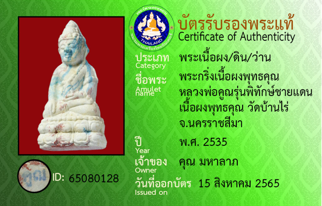 佛牌名称 : 龙婆坤守护边疆药师佛 圣粉材质 泰国瓦班莱寺 那空拉差斯玛府 佛历2535年