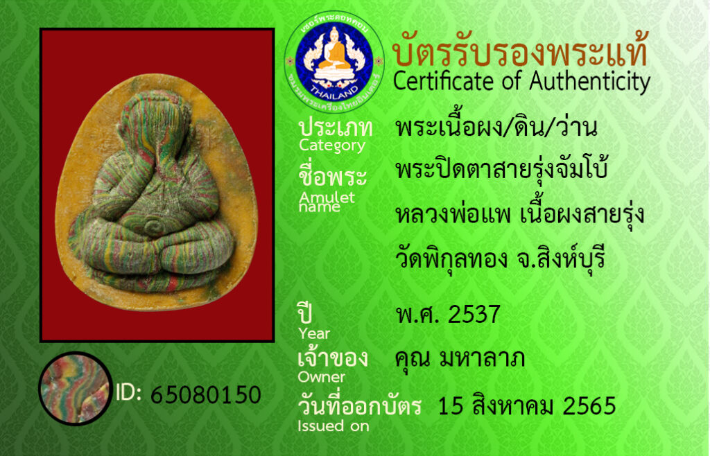 Amulet name : pra pidta sairung jambo luangpor pa watpikoontong