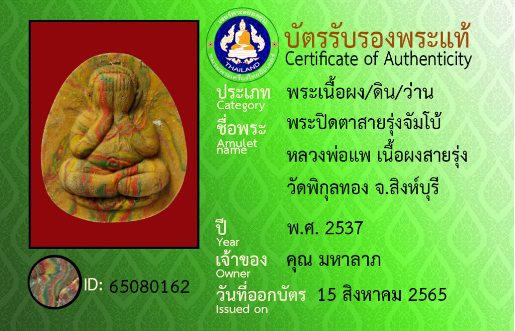Amulet name : pra pidta sairung jambo luangpor pa watpikoontong