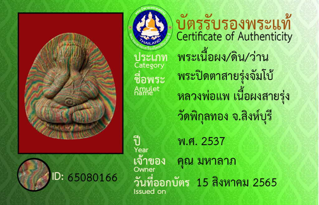 ชื่อพระ : พระปิดตาสายรุ่งจัมโบ้ หลวงพ่อเเพ เนื้อผงสายรุ่ง วัดพิกุลทอง จ.สิงห์บุรี