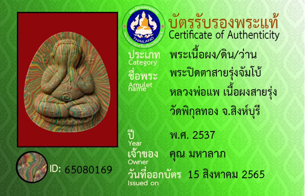 Amulet name : pra pidta sairung jambo luangpor pa watpikoontong