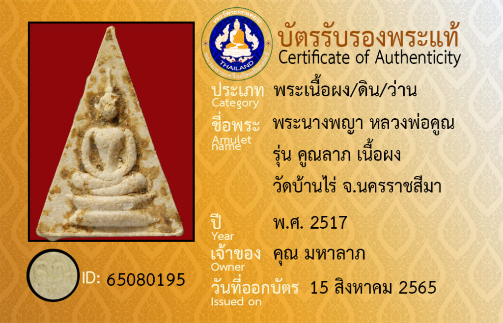 Amulet name : pra nang pa ya luang por koon, wat ban rai