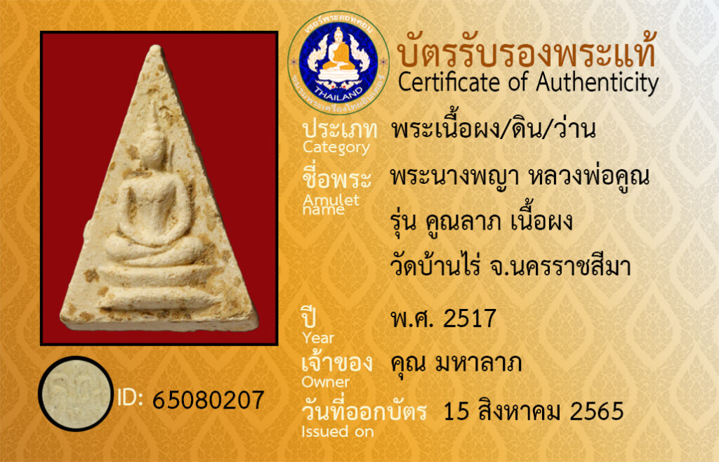 ชื่อพระ : พระนางพญา รุ่น คูณลาภ เนื้อผง หลวงพ่อคูณ วัดบ้านไร่ จ.นครราชสีมา