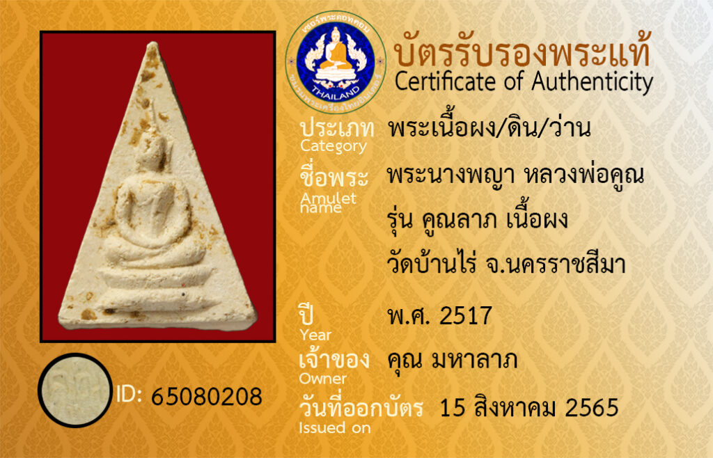 Amulet name : pra nang pa ya luang por koon, wat ban rai