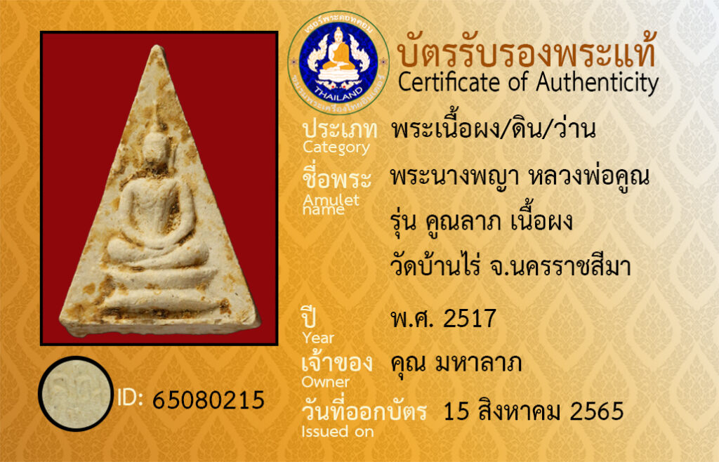 ชื่อพระ : พระนางพญา รุ่น คูณลาภ เนื้อผง หลวงพ่อคูณ วัดบ้านไร่ จ.นครราชสีมา
