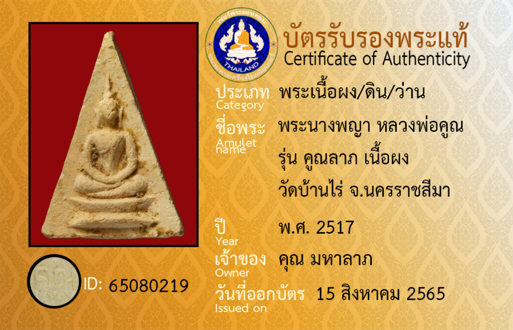 ชื่อพระ : พระนางพญา รุ่น คูณลาภ เนื้อผง หลวงพ่อคูณ วัดบ้านไร่ จ.นครราชสีมา
