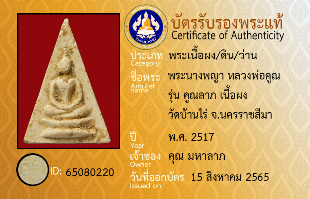 Amulet name : pra nang pa ya luang por koon, wat ban rai
