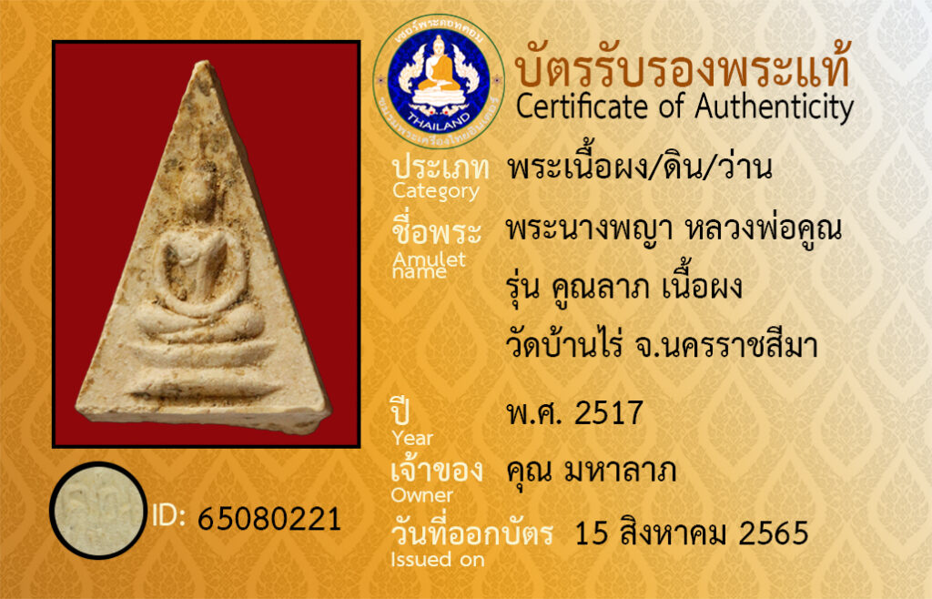 Amulet name : pra nang pa ya luang por koon, wat ban rai