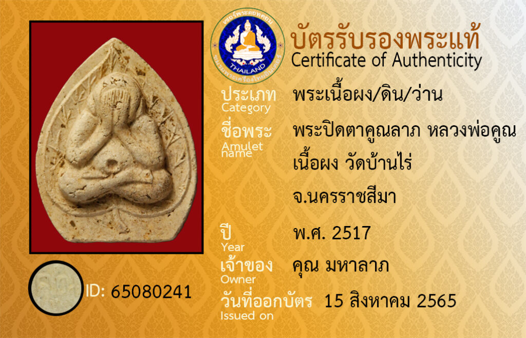 ชื่อพระ : พระปิดตาคูณลาภ หลวงพ่อคูณ เนื้อผง วัดบ้านไร่ จ.นครราชสีมา
