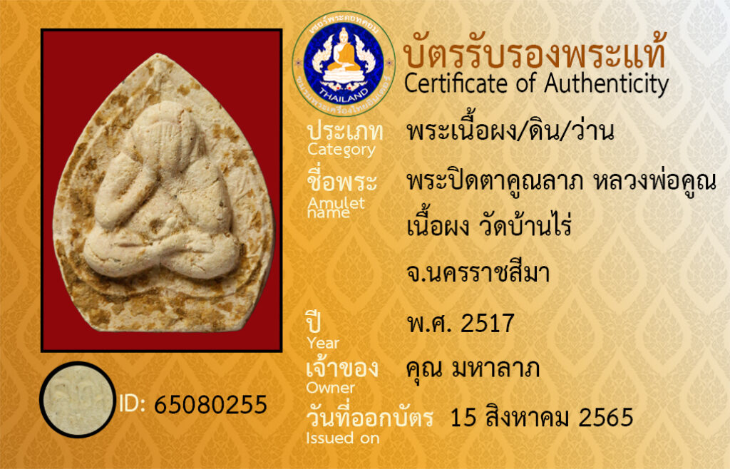 ชื่อพระ : พระปิดตาคูณลาภ หลวงพ่อคูณ เนื้อผง วัดบ้านไร่ จ.นครราชสีมา