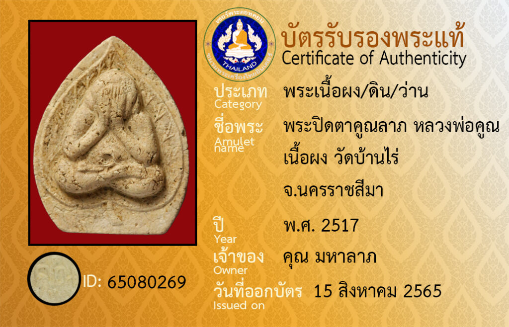 Amulet name : pra pidta Luangpor Koon wat banrai