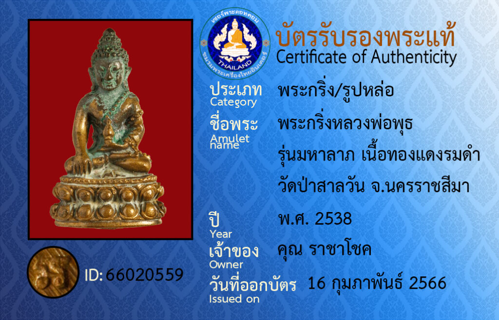 ชื่อพระ :พระกริ่งหลวงพ่อพุธ รุ่นมหาลาภ เนื้อทองแดงรมดำ วัดป่าสาลวัน จ.นครราชสีมา