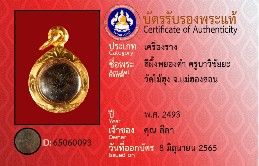 ชื่อพระ : สีผึ้งพยองคำ ครูบาวิชัยยะ วัดไม้ฮุง จ.แม่ฮองสอน