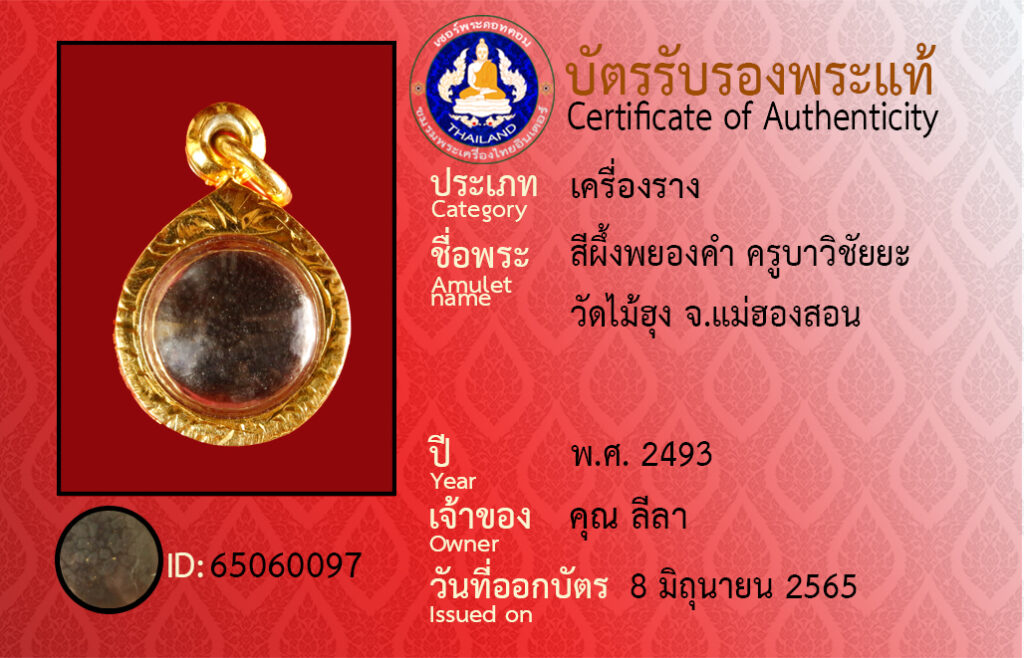 ชื่อพระ : สีผึ้งพยองคำ ครูบาวิชัยยะ วัดไม้ฮุง จ.แม่ฮองสอน