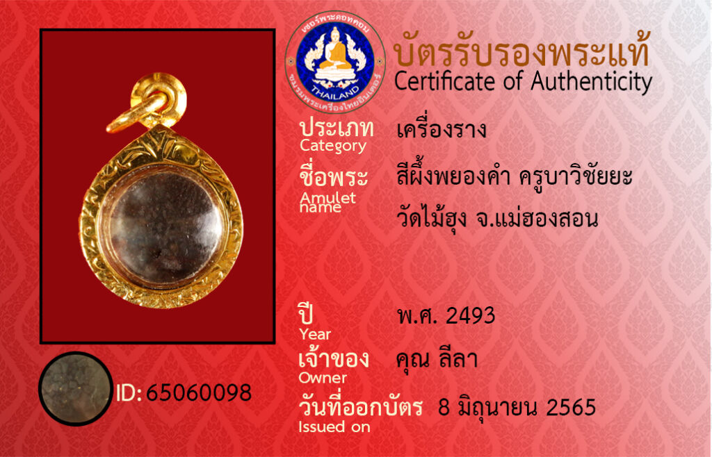 ชื่อพระ : สีผึ้งพยองคำ ครูบาวิชัยยะ วัดไม้ฮุง จ.แม่ฮองสอน