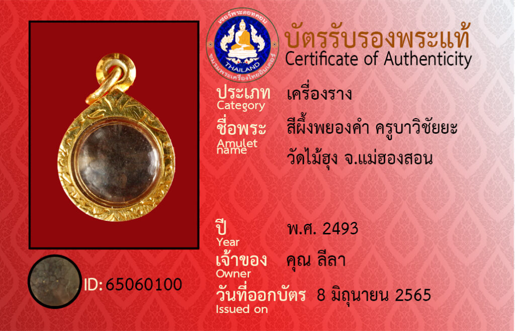 ชื่อพระ : สีผึ้งพยองคำ ครูบาวิชัยยะ วัดไม้ฮุง จ.แม่ฮองสอน