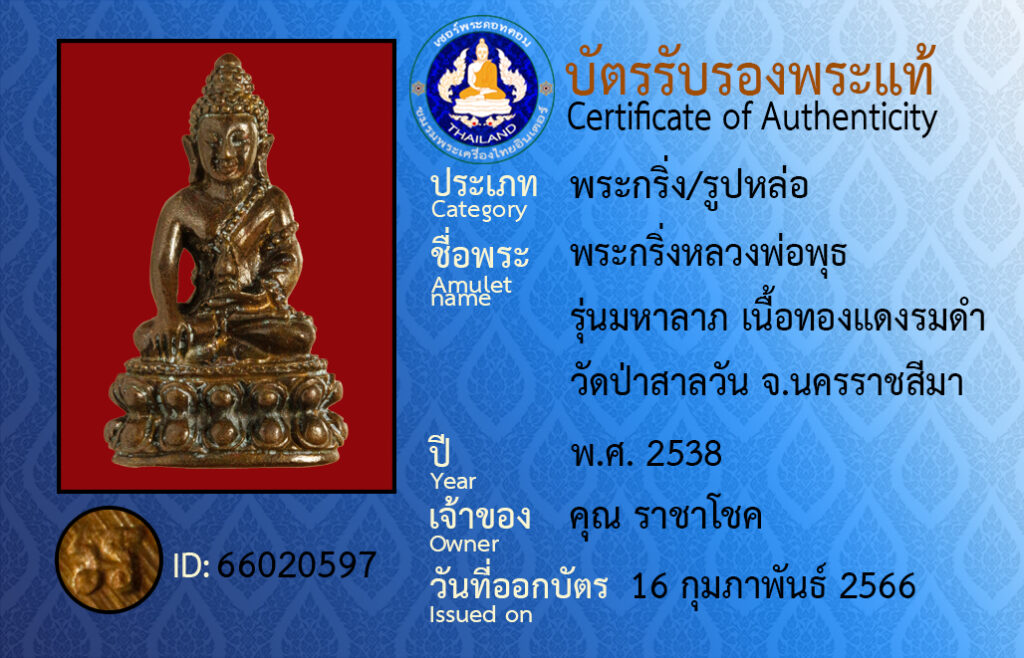 ชื่อพระ :พระกริ่งหลวงพ่อพุธ รุ่นมหาลาภ เนื้อทองแดงรมดำ วัดป่าสาลวัน จ.นครราชสีมา
