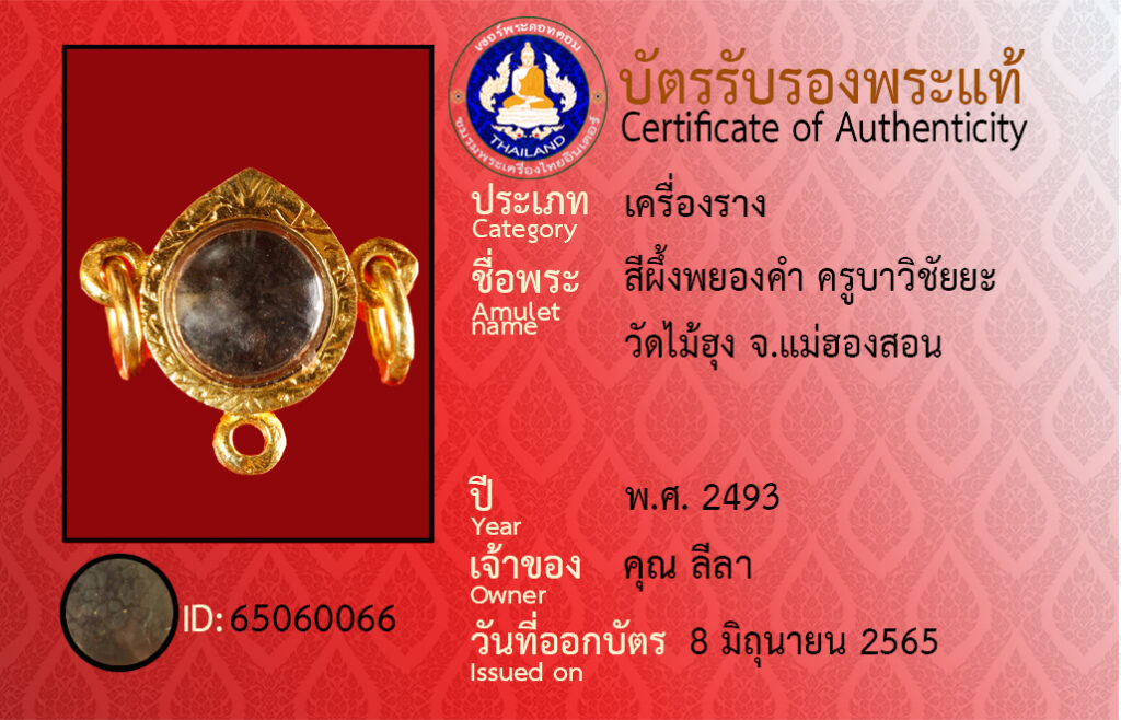 ชื่อพระ : สีผึ้งพยองคำ ครูบาวิชัยยะ วัดไม้ฮุง จ.แม่ฮองสอน