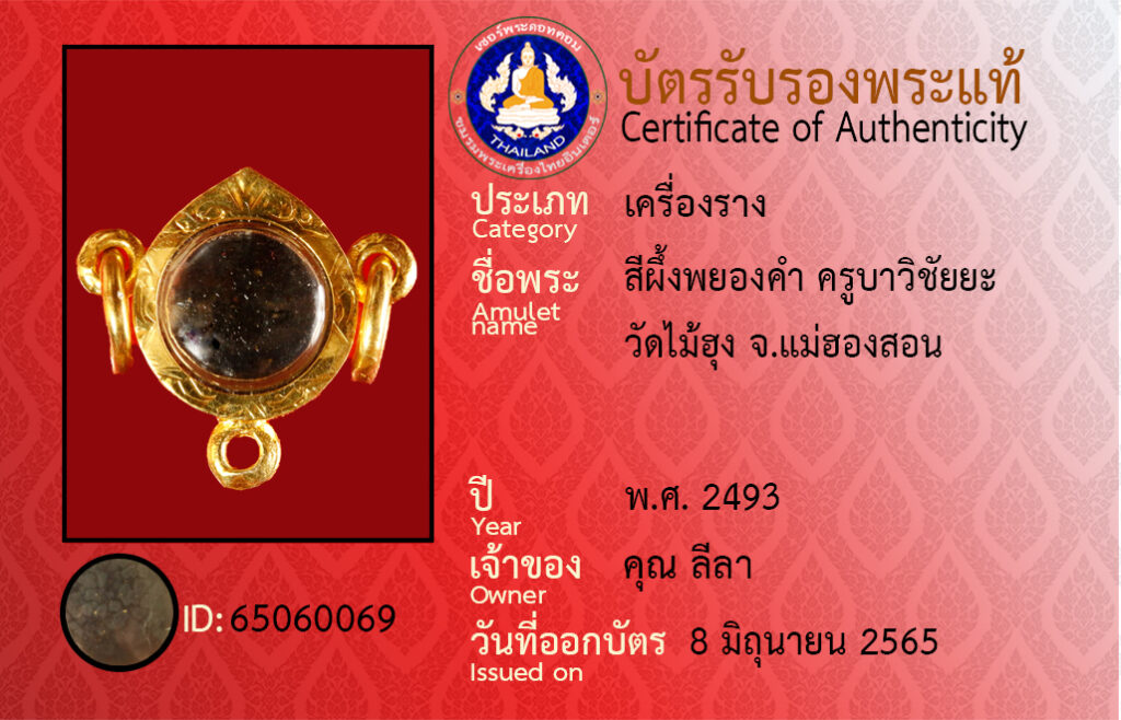 ชื่อพระ : สีผึ้งพยองคำ ครูบาวิชัยยะ วัดไม้ฮุง จ.แม่ฮองสอน