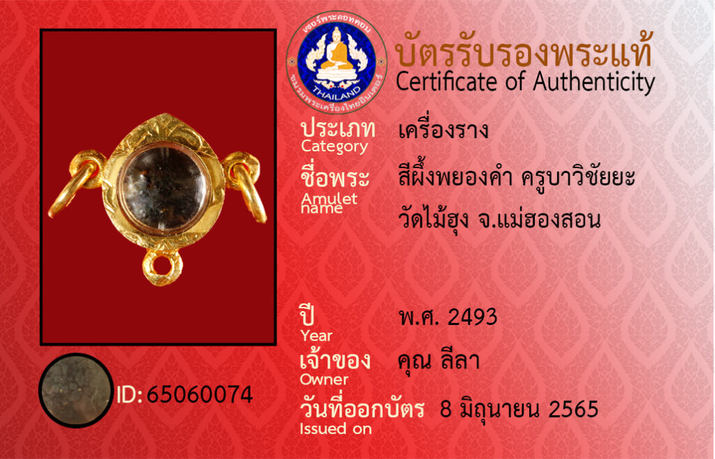 ชื่อพระ : สีผึ้งพยองคำ ครูบาวิชัยยะ วัดไม้ฮุง จ.แม่ฮองสอน
