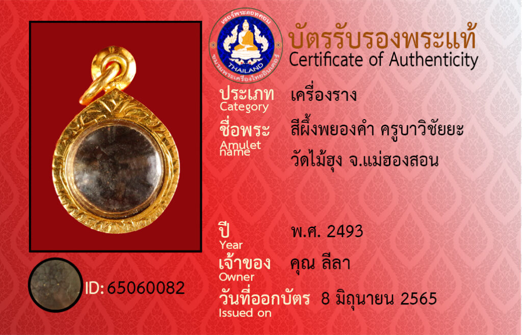ชื่อพระ : สีผึ้งพยองคำ ครูบาวิชัยยะ วัดไม้ฮุง จ.แม่ฮองสอน