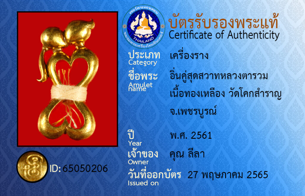 佛牌名称 : 龙达纶 素撒华哈燕通 黄铜材质 泰国瓦空撒兰寺 碧差汶府 佛历2561年