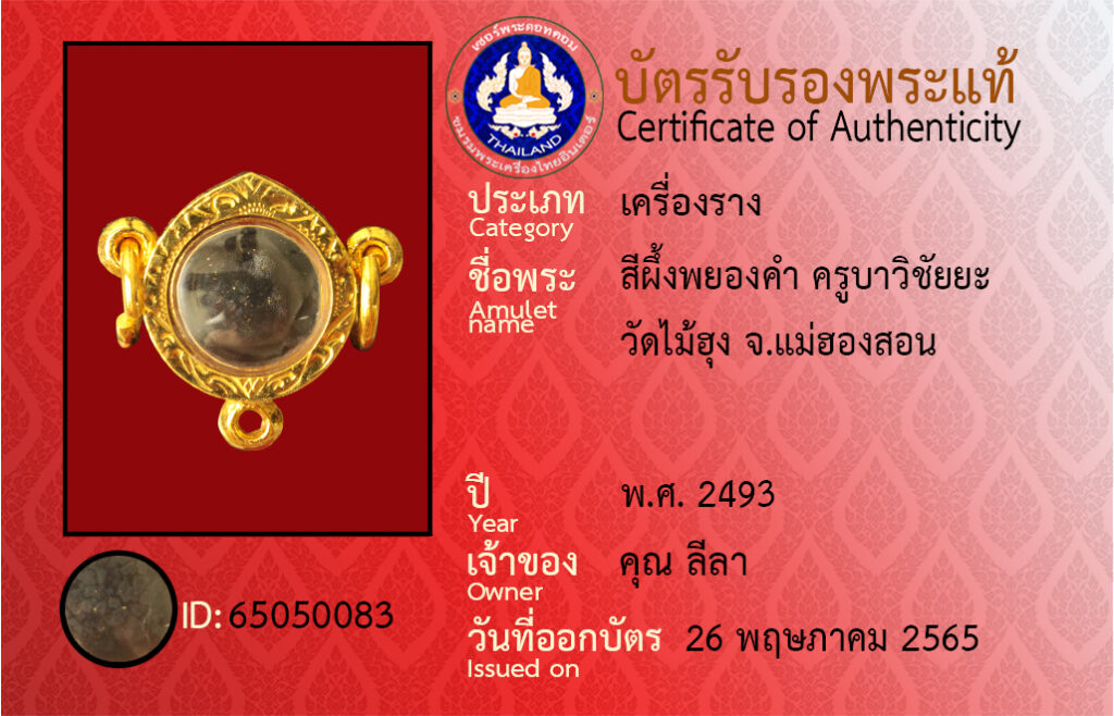 ชื่อพระ : สีผึ้งพยองคำ ครูบาวิชัยยะ วัดไม้ฮุง จ.แม่ฮองสอน