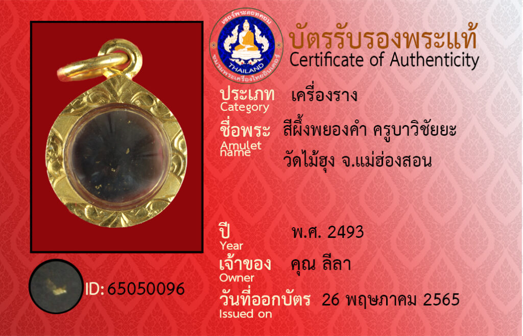 ชื่อพระ : สีผึ้งพยองคำ ครูบาวิชัยยะ วัดไม้ฮุง จ.แม่ฮองสอน