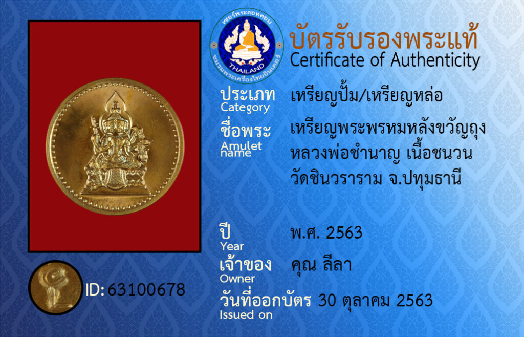 Amulet name : pra prom luang por chamnan ,watchinwararam