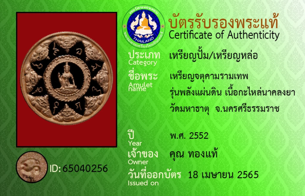 Amulet name : Rian Chatu Kham Ram Thep, Run Phalang Phaendin, Nuea Ka Lai Nak Long Ya ,Wat MahaThat Cho, Nakhon Si Thammarat