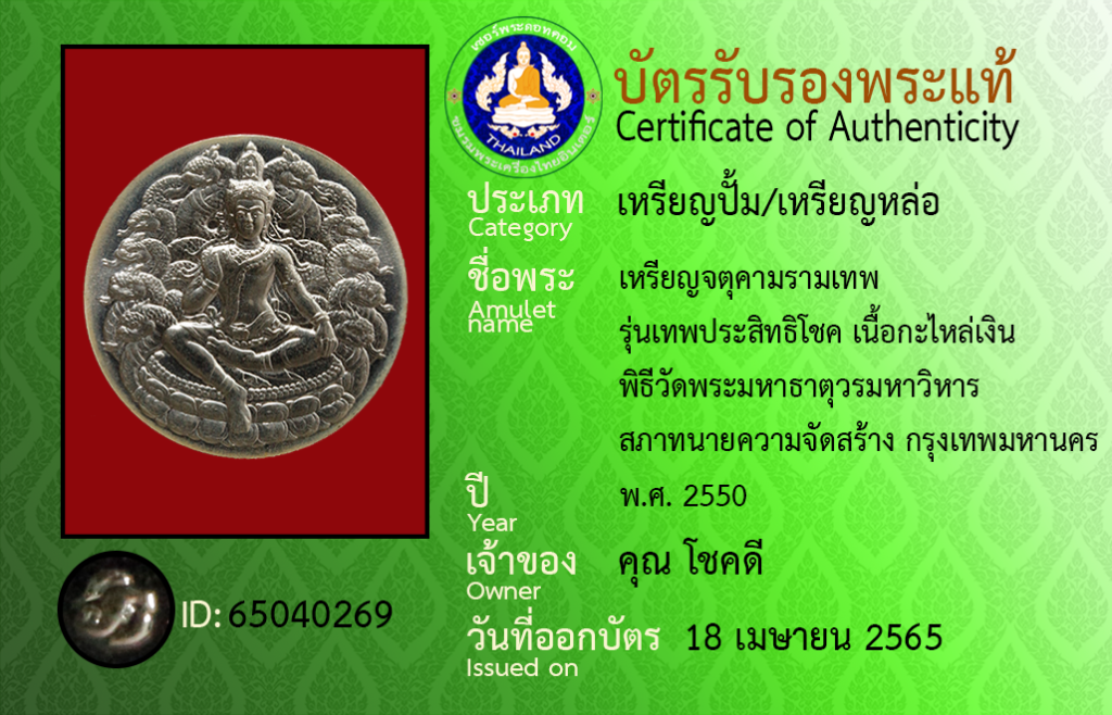 Amulet name : Rian Chatu Kham Ram Thep, Run Thep Pra SitthiChok ,Nuea Ka Lai Ngoen, Phithi Wat Phra Mahathat Woramahawihan ,Sapha Thanaikhwam Chat Sang, Krungthepmahanakhon