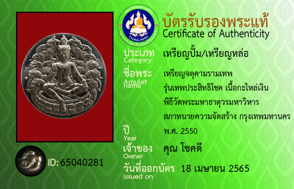 ชื่อพระ : เหรียญจตุคามรามเทพ รุ่นเทพประสิทธิโชค เนื้อกะไหล่เงิน พิธีวัดพระมหาธาตุวรมหาวิหาร สภาทนายความจัดสร้าง กรุงเทพมหานคร