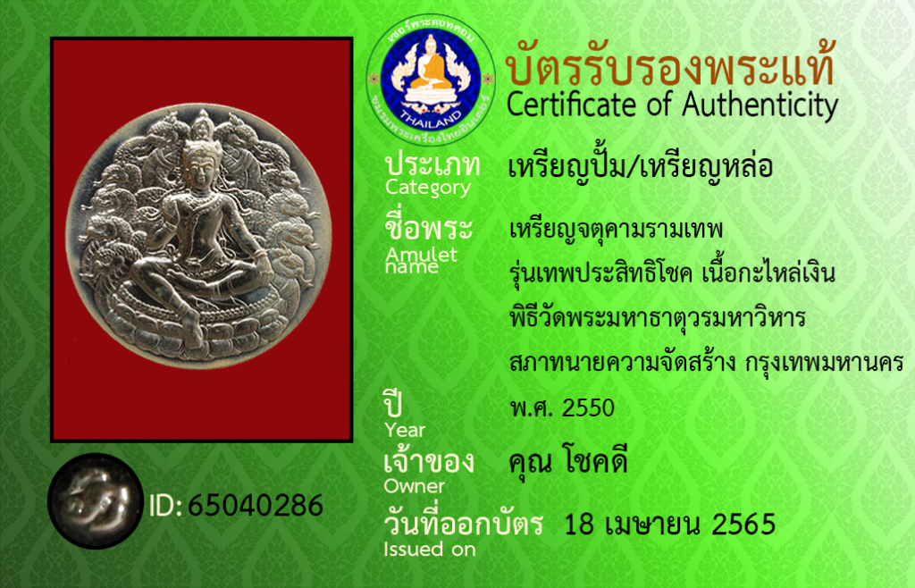 Amulet name : Rian Chatu Kham Ram Thep, Run Thep Pra SitthiChok ,Nuea Ka Lai Ngoen, Phithi Wat Phra Mahathat Woramahawihan ,Sapha Thanaikhwam Chat Sang, Krungthepmahanakhon