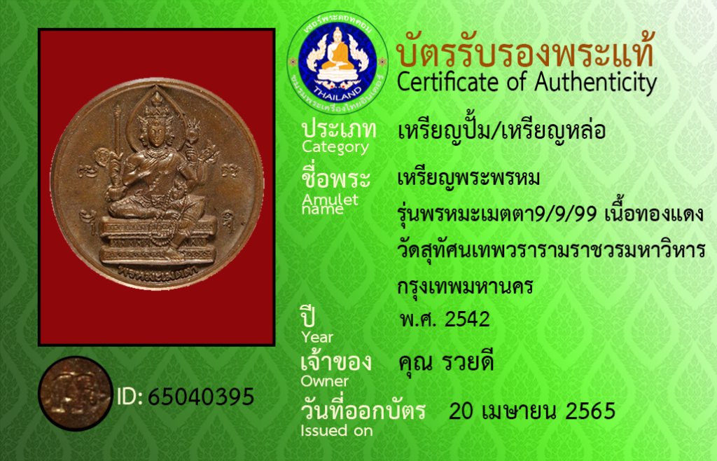 Amulet name : Rian Phra Phrom, Run Phon Ma Metta 9/9/99],Nuea Thongdaeng ,Wat Su Thatsana Thep Wara Ram Ratchaworamahawihan, Krungthepmahanakhon