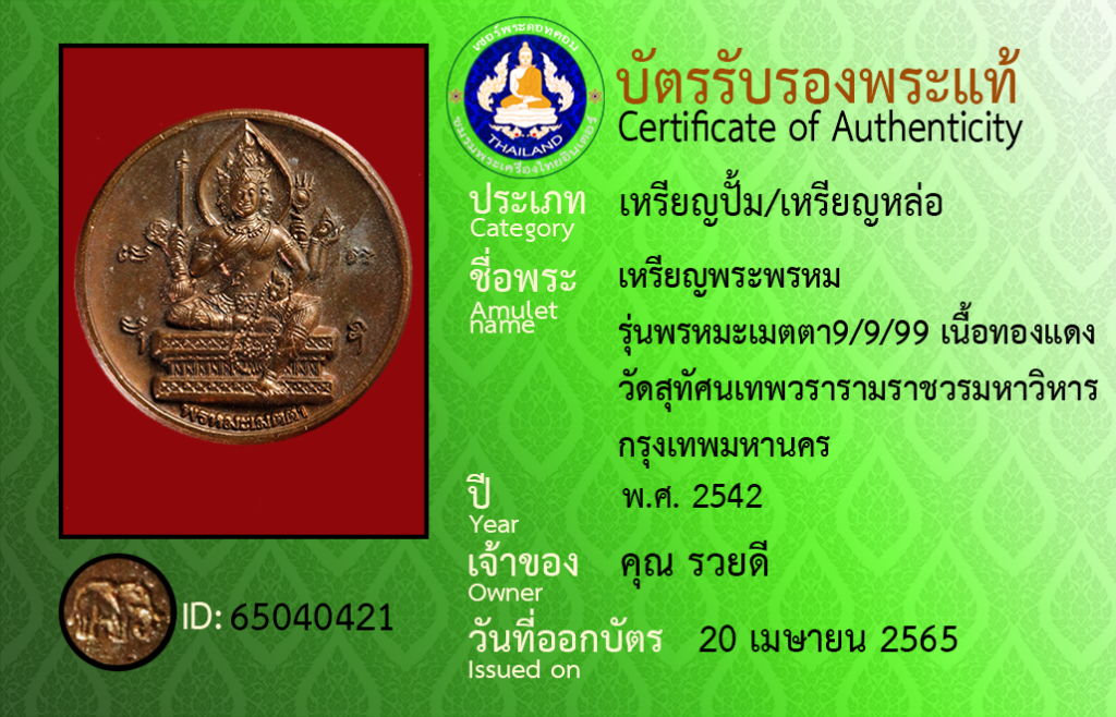 Amulet name : Rian Phra Phrom, Run Phon Ma Metta 9/9/99],Nuea Thongdaeng ,Wat Su Thatsana Thep Wara Ram Ratchaworamahawihan, Krungthepmahanakhon
