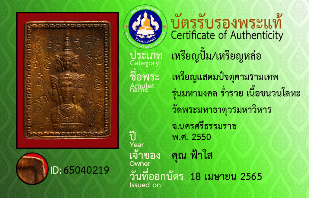 Amulet name : lian sa taem ja tu kram ram ma tayp