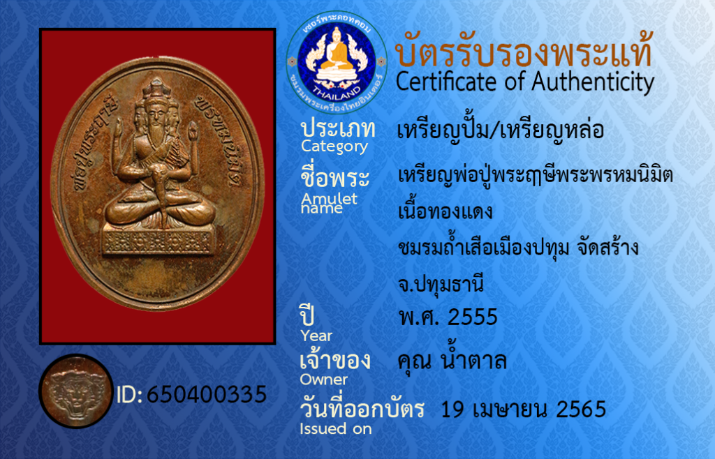 ชื่อพระ : เหรียญพ่อปู่พระฤๅษีพระพรหมนิมิต เนื้อทองแดง ชมรมถ้ำเสือเมืองปทุม จัดสร้าง จ.ปทุมธานี