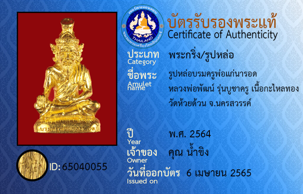 ชื่อพระ : รูปหล่อบรมครูพ่อแก่นารอด หลวงพ่อพัฒน์ รุ่นบูชาครู เนื้อกะไหลทอง วัดห้วยด้วน จ.นครสวรรค์