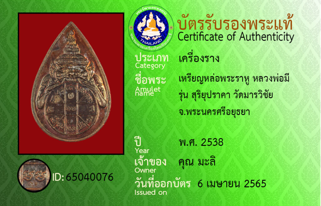 Amulet name : Rahu Buddha amulet, Luang Por Mee