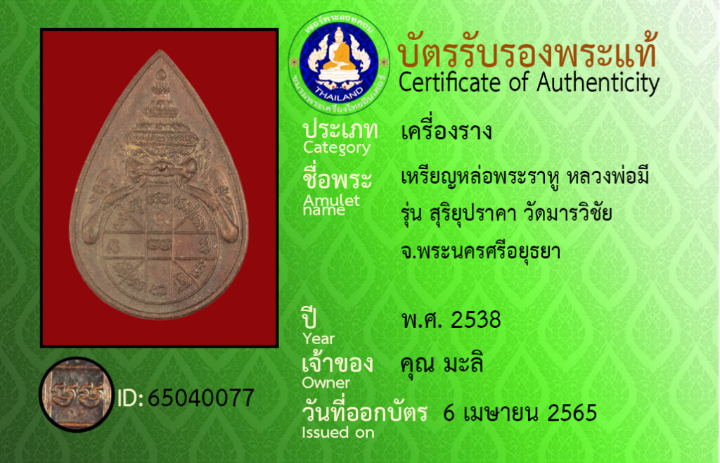Amulet name : Rahu Buddha amulet, Luang Por Mee