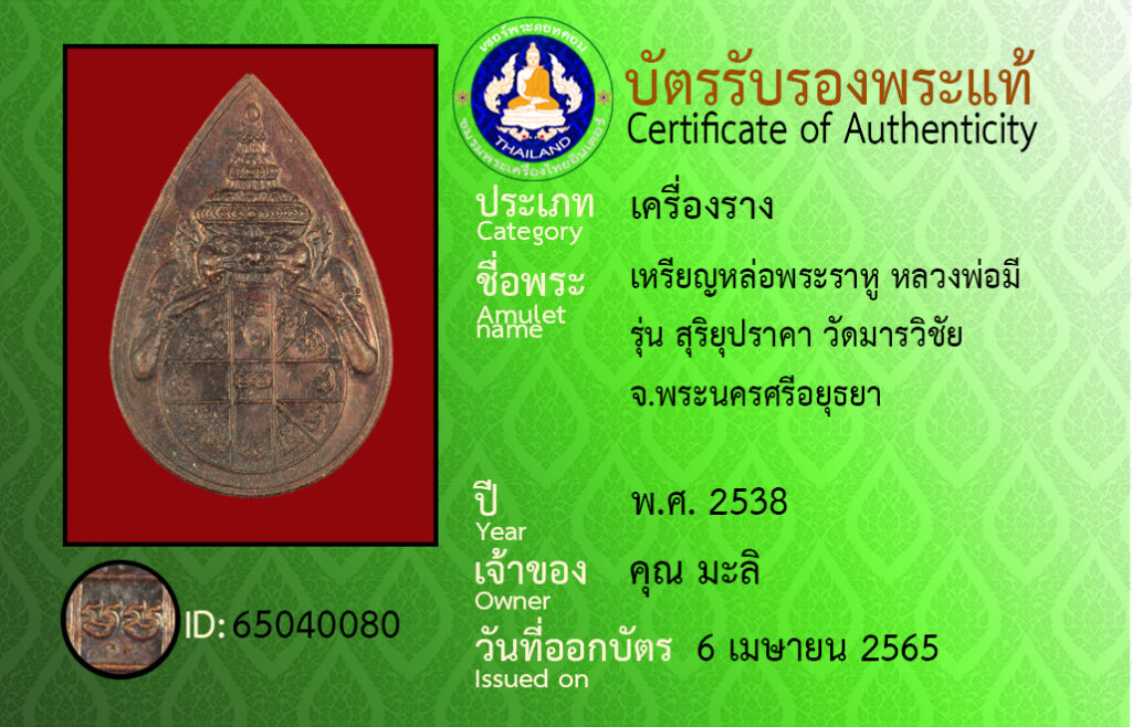 Amulet name : Rahu Buddha amulet, Luang Por Mee