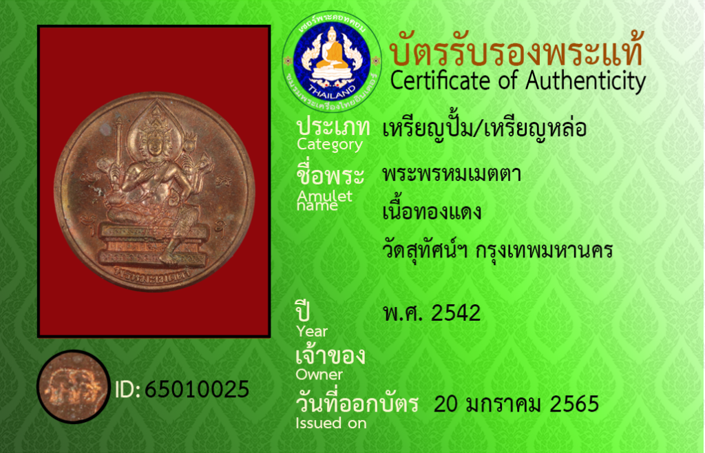 Amulet name : Phra Phrom Metta, Wat Su tat, Krungthepmahanakhon
