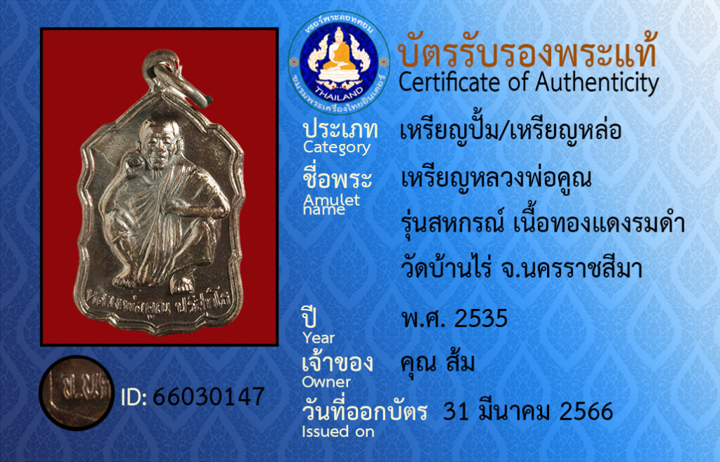 Amulet name :rian luang por koon run sa ha kron neua tong dang rom dam wat ban rai na kon rat sa see ma